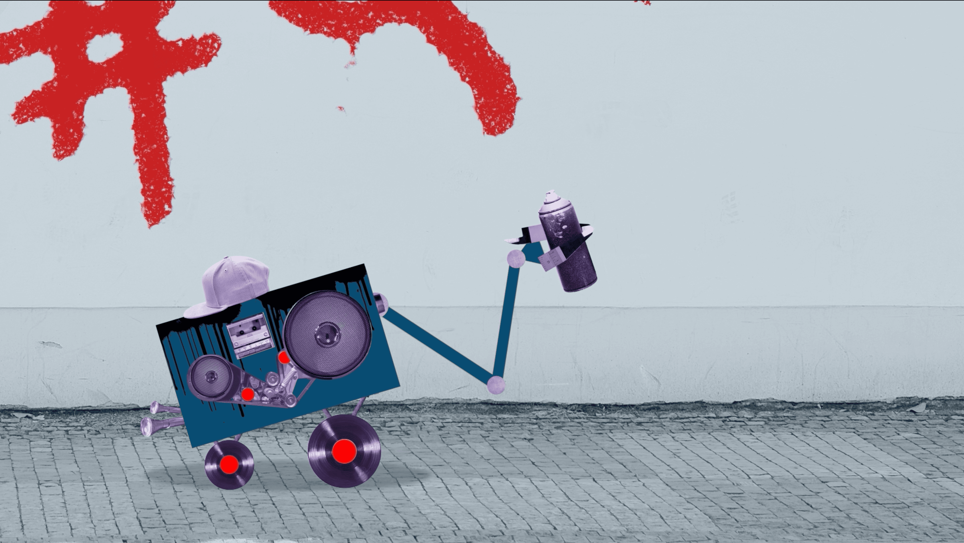 collage style rigged and animated robot getting annoyed by empty spray can. Learning how to animate with a bit more emotion and how to rig in after effects.
